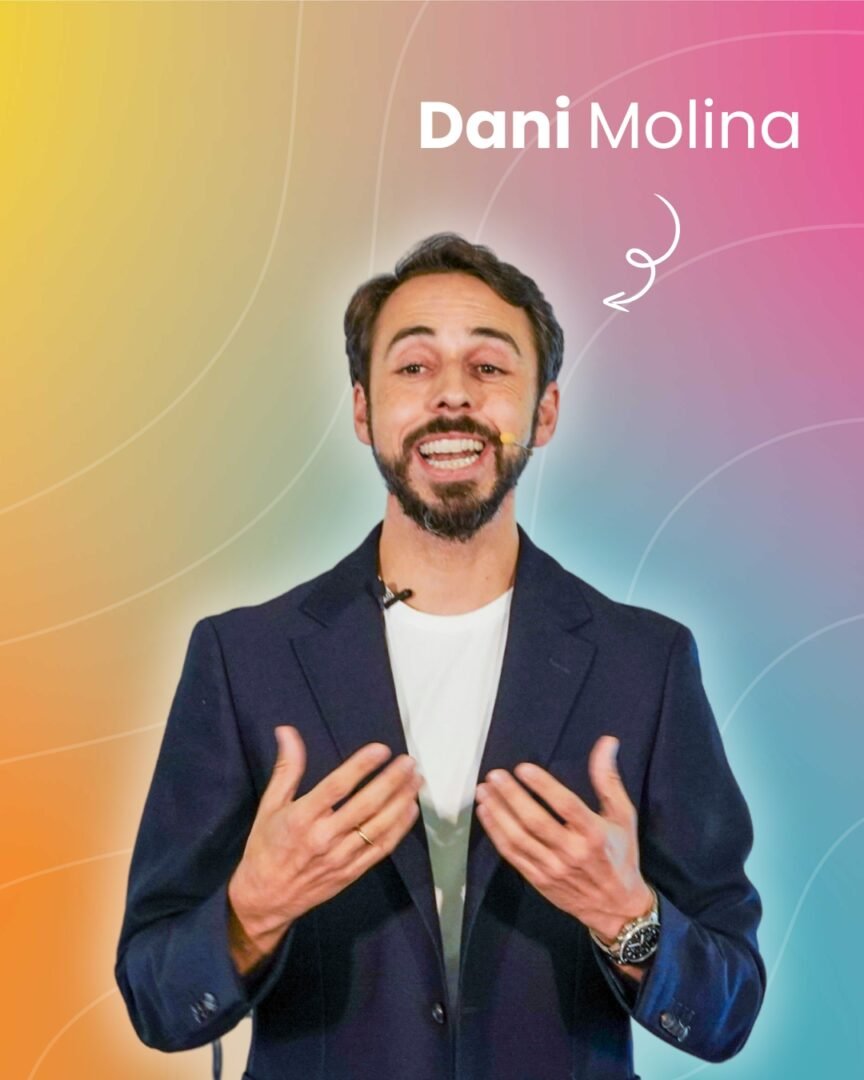 Dani Molina es entusiasta, calma e inspirador. Ciclista, alpinista, tenista. Formador desde 2017, ha trabajado con empresas como Porsche, El Corte Inglés y Telefónica. Ha vivido en Australia, se ha roto 6 veces las clavículas y sabe hacer el cubo de Rubik.